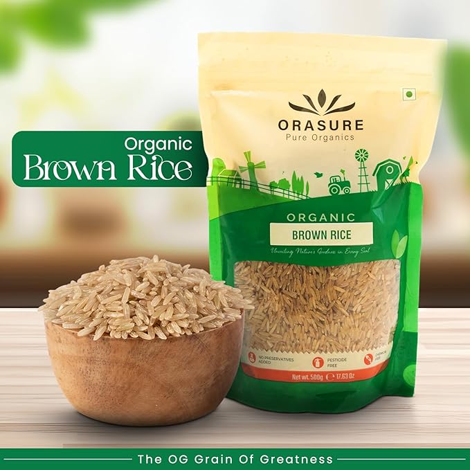 Orasure Organic Brown Rice is a nutritious and wholesome grain, filled with dietary fiber to aid digestion and encourage heart health. Loaded with vital minerals such as magnesium and manganese, in addition to vitamin B, it delivers sustained energy and enhances overall wellness. It had low glycemic index and a fantastic option for keeping blood sugar levels stable. Ideal for daily meals, it brings a tasty and nutritious element to your diet. Relish the health benefits and purity of Orasure Organic Brown Rice in each serving.