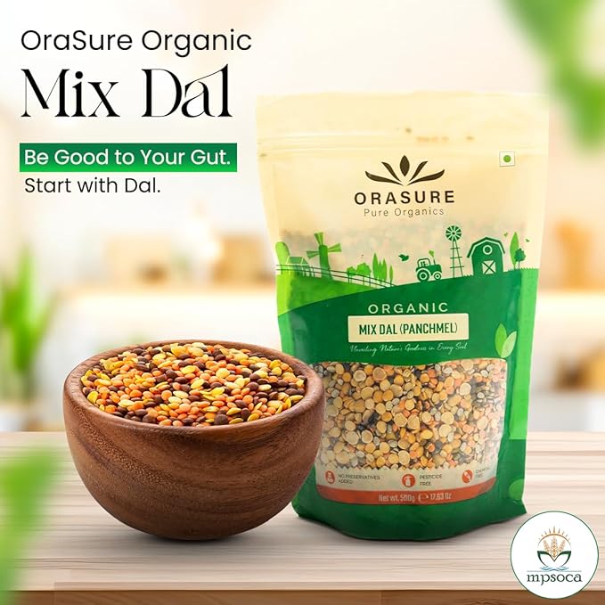 All five dals (Chana, Urad, Toor, Masoor, Moong) in Orasure Panchmel are 100% certified organic, sun-dried, and non-polished, ensuring that the five-dal mix is nutritious and tasty. Each Dal in Panchmel brings its own unique flavour and health benefits, making this dal mix a superfood. Eating this will nourish your body, providing essential protein, fibre, vitamins, and minerals. These nutrients work together to improve gut health, strengthen muscles and bones, and enhance your immune system.